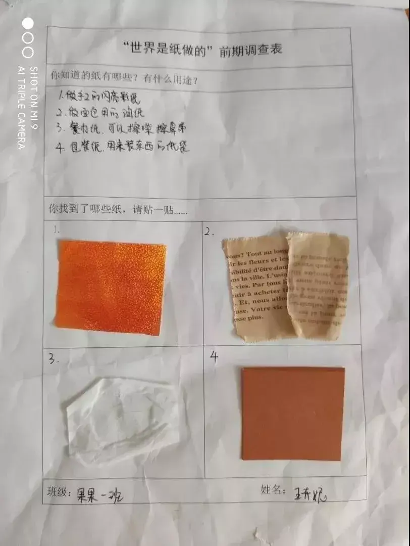 纸是用什么做出来的?纸可以用来做什么?纸厚薄为什么不一样?一连串的问题引导孩子们走进了纸的世界。