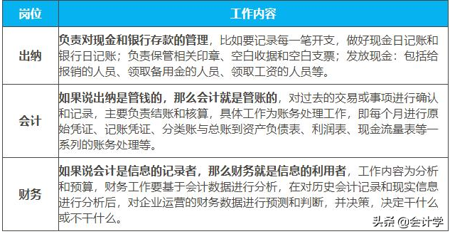 出纳、会计、财务三者的工作内容