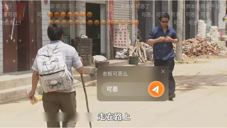 案例二:黑心老板拖欠工资,被农民工认出,怎料连特警都出动了视频中的小伙被黑心工地老板拖欠了工资,在视频解说中作者通过弹幕贴纸+话语引导的方式号召各位通过弹幕表达自己对这件事的看法,不仅让观众为小伙发声,还增加了视频的弹幕量。