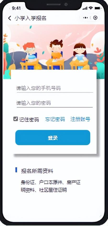 报名主体注册:身份证号作为唯一标识,注册时设定密码(适龄儿童少年身份证信息作为唯一标识)。