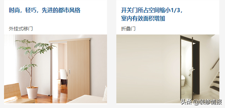 另外一点就是对于空间比较紧张的卫生间来说,一卫改两卫还可能存在一个门的问题,里面的空间比较小传统的开门就会容易碰到坐便器,这里再给大家一个门的解决方案。看下图,左侧外挂的移门大建应该看到的比较多了,注意右侧的内开折门,非常好用,市场上大建木门,日门建材都有这样的门可以定制,价格也不算很贵。