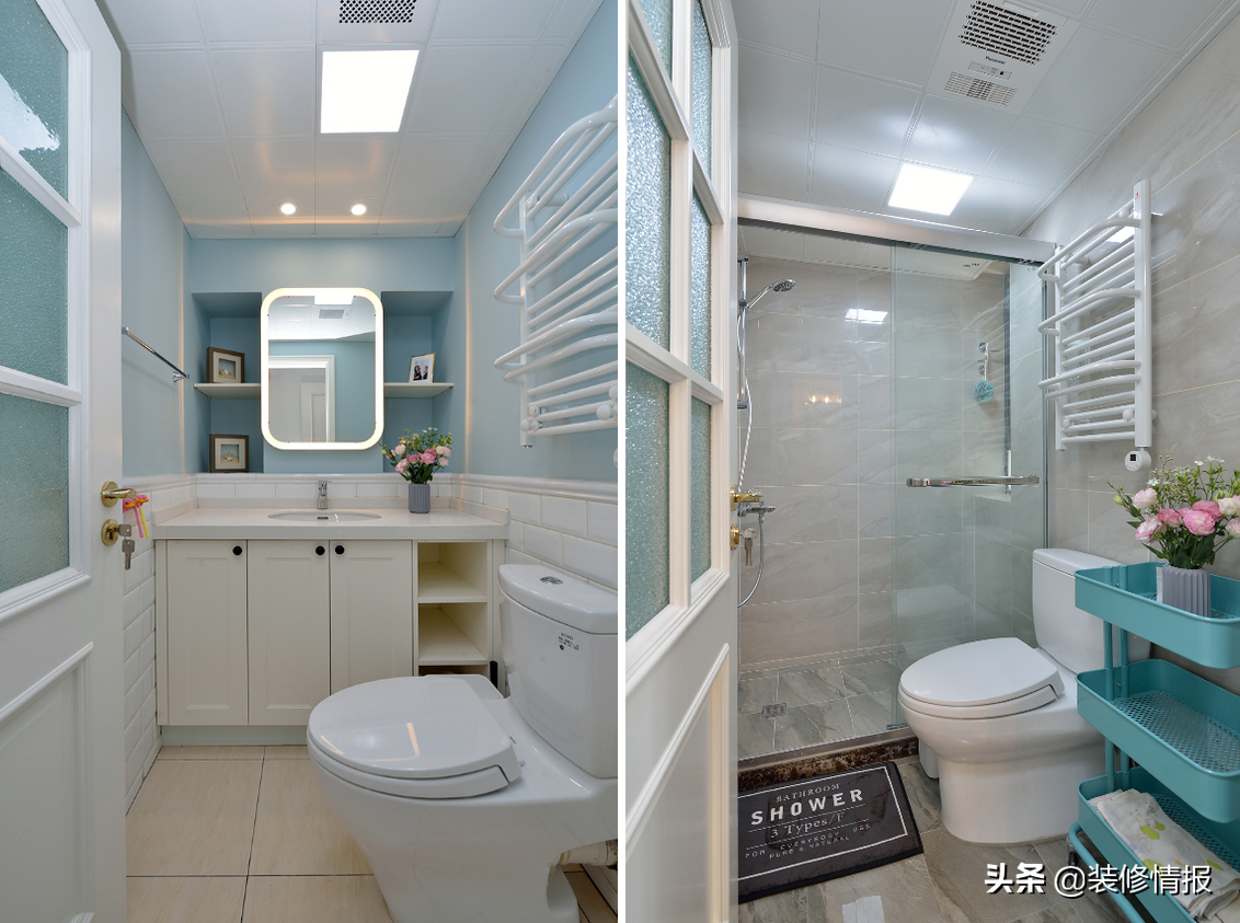 一卫改两卫对于三室一卫,或者两室一卫,并且三代同堂居住人口比较多的情况下,改造完成后简直大大提高生活质量,特别外面的卫生间在做成干湿分离的话,那两个卫生间可以同时满足三个人洗脸刷牙用卫生间,妈妈再也不用担心早上卫生间不够用了。如下图: