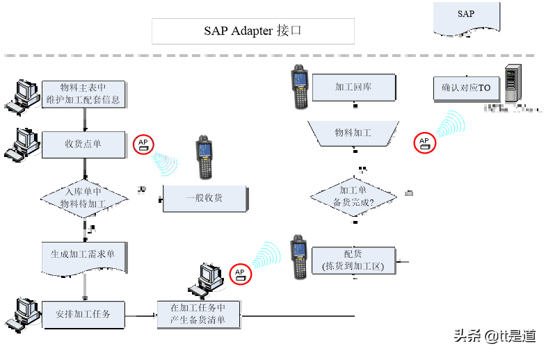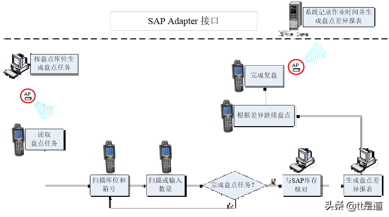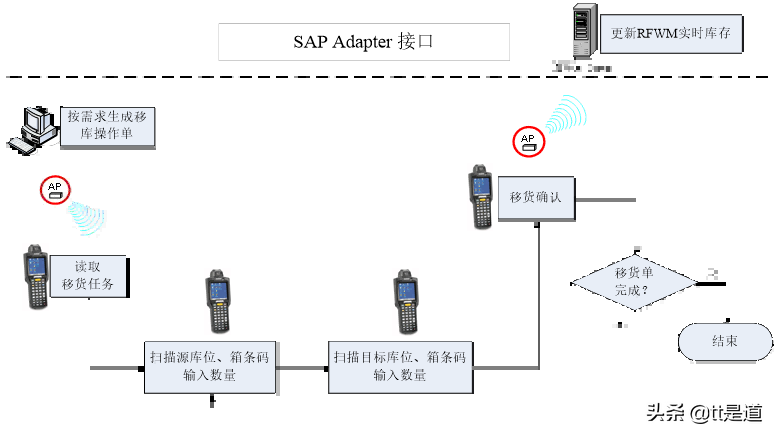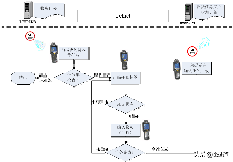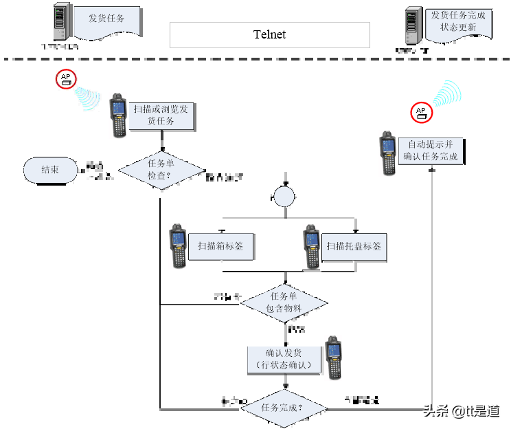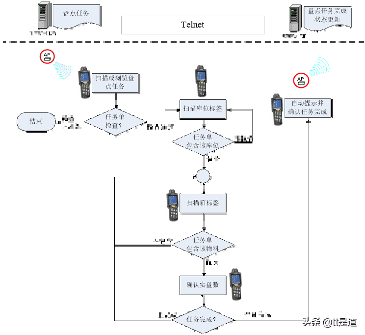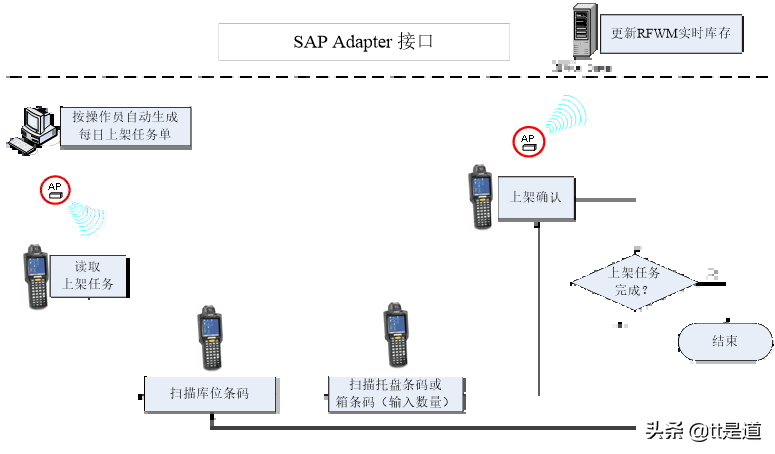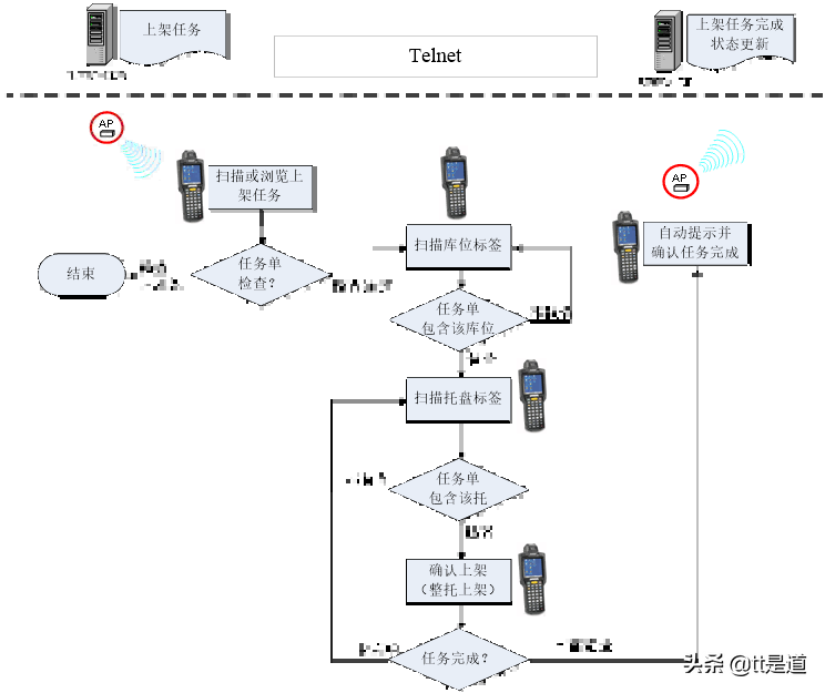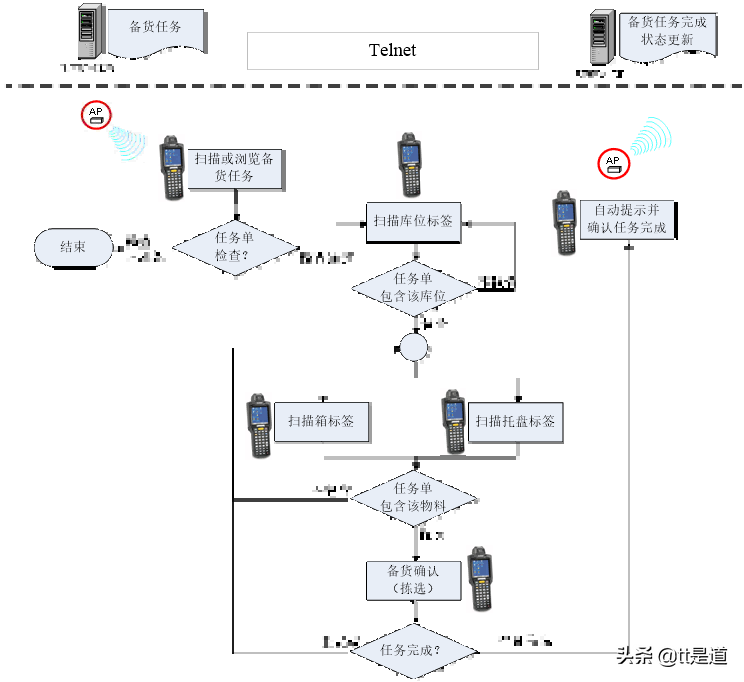 1. WMS/ERP系统产生拣货、补货、上货架等作业指令,并通过无线网络传送到穿戴式语音终端设。