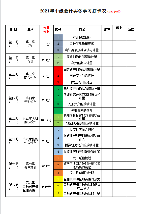 2021中级会计师备考攻略:学习时间打卡表+必备公式+知识考点+真题精选,真的绝了!