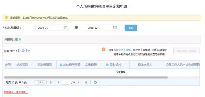 1、目前,个人所得税纳税清单只支持开具2018年12月31日以前(含)的数据。根据国家税务总局公告2018年第55号,若您需要开具2019年1月以后的个人所得税纳税情况,您可前往全市各办税服务厅办理开具《纳税记录》。