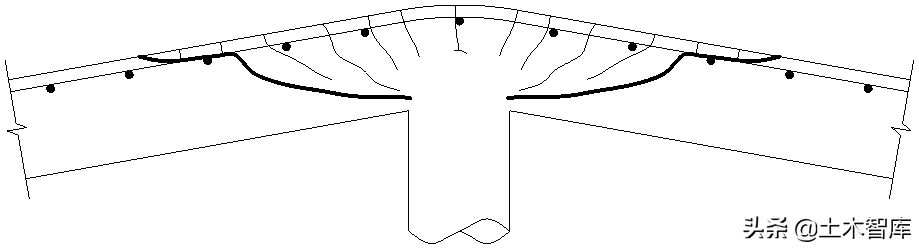 2、如果在柱头附近出现了如CEB-FIP《模式规范》MC90图6.4.4(或fib《模式规范》MC2010图7.3.28)所示的展开裂缝,楼板呈弯冲破坏,此时则在堆载过大而导致图示板顶钢筋拉断,图示中的受压区将会一并塌落,柱头就会呈现光溜现象。