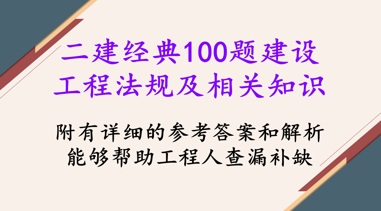 二建法规难度高?二建经典100题建设工程法规及相关知识,附有详细的参考答案和解析,能够帮助工程人查漏补缺,是非常好用的一套试题。