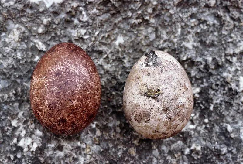 左边是正常的游隼蛋,右边是因为DDT导致的蛋壳过薄的坏蛋。图片来自sciencephoto