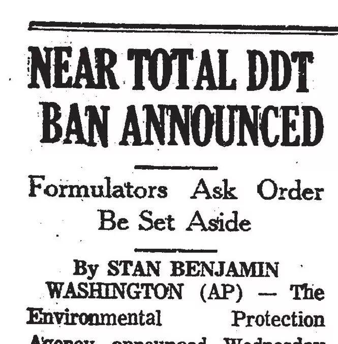 美国在1972年禁用了DDT 图片来自网络