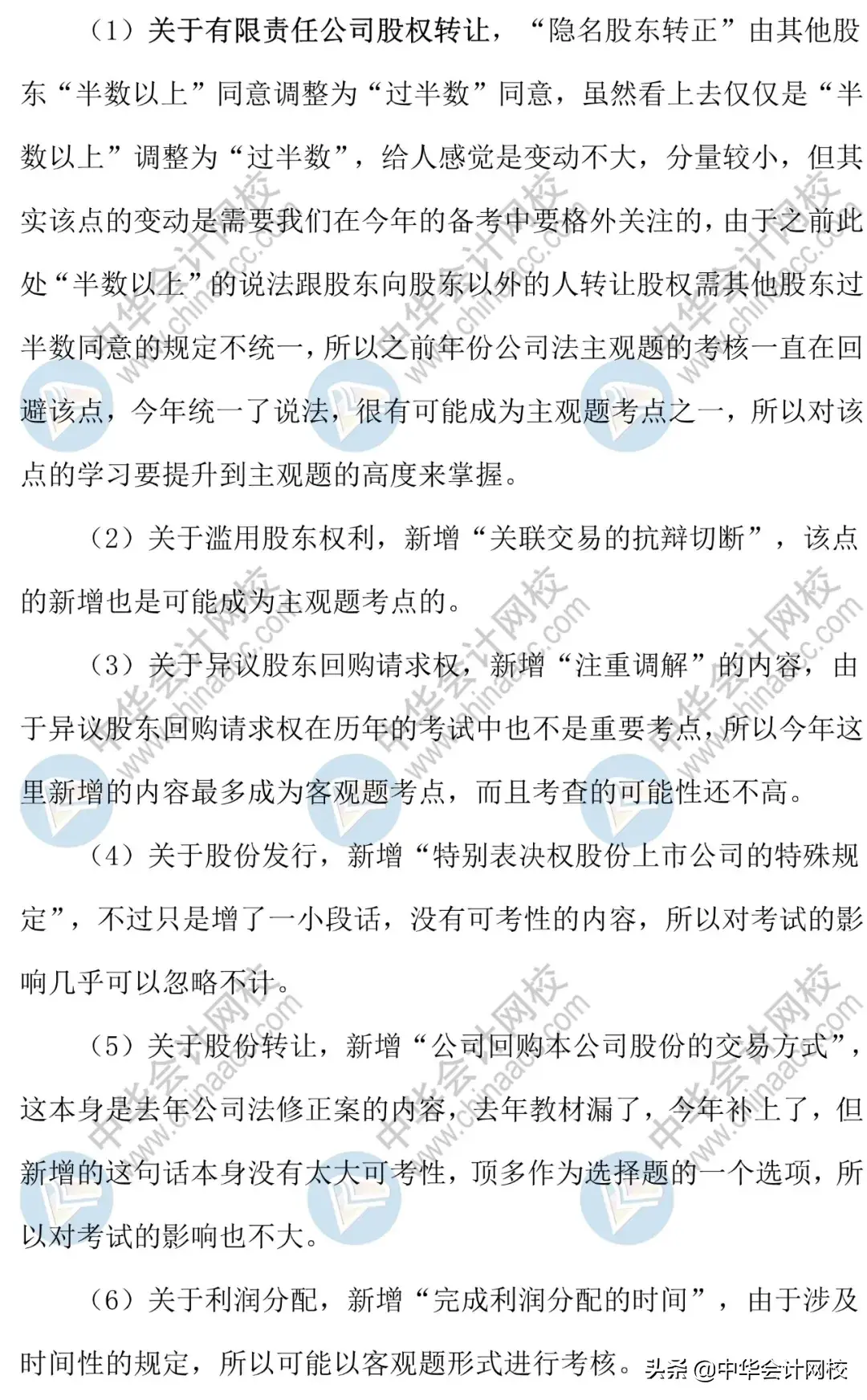对个别知识点进行补充,对考试影响不大。第一章的学习依然以客观题备考为主,学习重点依然是教材的传统考点。