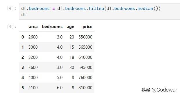 df.bedrooms = df.bedrooms.fillna(df.bedrooms.median())我们直接用bedrooms的中位数填补确实即可,填补结果如下: