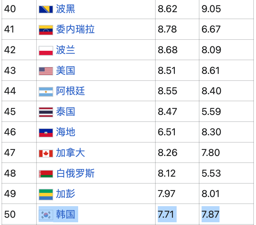 2021年度人均年酒精消费量仍然在亚洲一骑绝尘,虽然数量比2020年有所降低,但仍然达到了7.71升,位列东亚第一,全球前50。