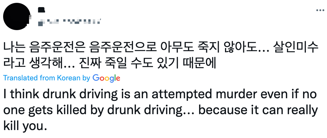 但问题是,虽然法律上有明文规定,但韩国社会对于酒驾的看法却很暧昧。人们经常觉得,只要不撞死人,那酒驾也没什么大不了的。