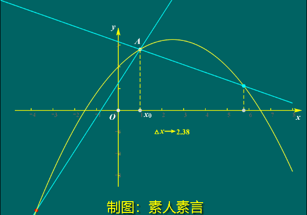 说到导数,不得不说平均变化率,什么叫做平均变化率那?物理上有一个类似的概念叫做平均速度,平均速度指的是路程差÷时间差。那么数学上如何理解那?简单来说就是函数值的差÷自变量的差所得到的值。几何意义就是曲线上割线的斜率也就是下图中PA的斜率。
