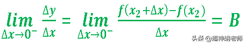 对比楼上讲的概念,我们在物理上依旧可以找到相似的概念,叫做瞬时速度 ,瞬时速度指的是物体在某一时刻的速度。那么数学上也很好理解这个概念,就是函数在某一点上的斜率,也可以理解为在这个点处所做的切线。如下图所示,如果动点从左边靠近A点,称为左逼近,此时平均变化率都接近于一个定值B,那么B就称为函数在该点处的左极限,同理,如果函数从右边逼近,且平均变化率也接近与于一个定值C,那么C称为函数在该点处的右极限