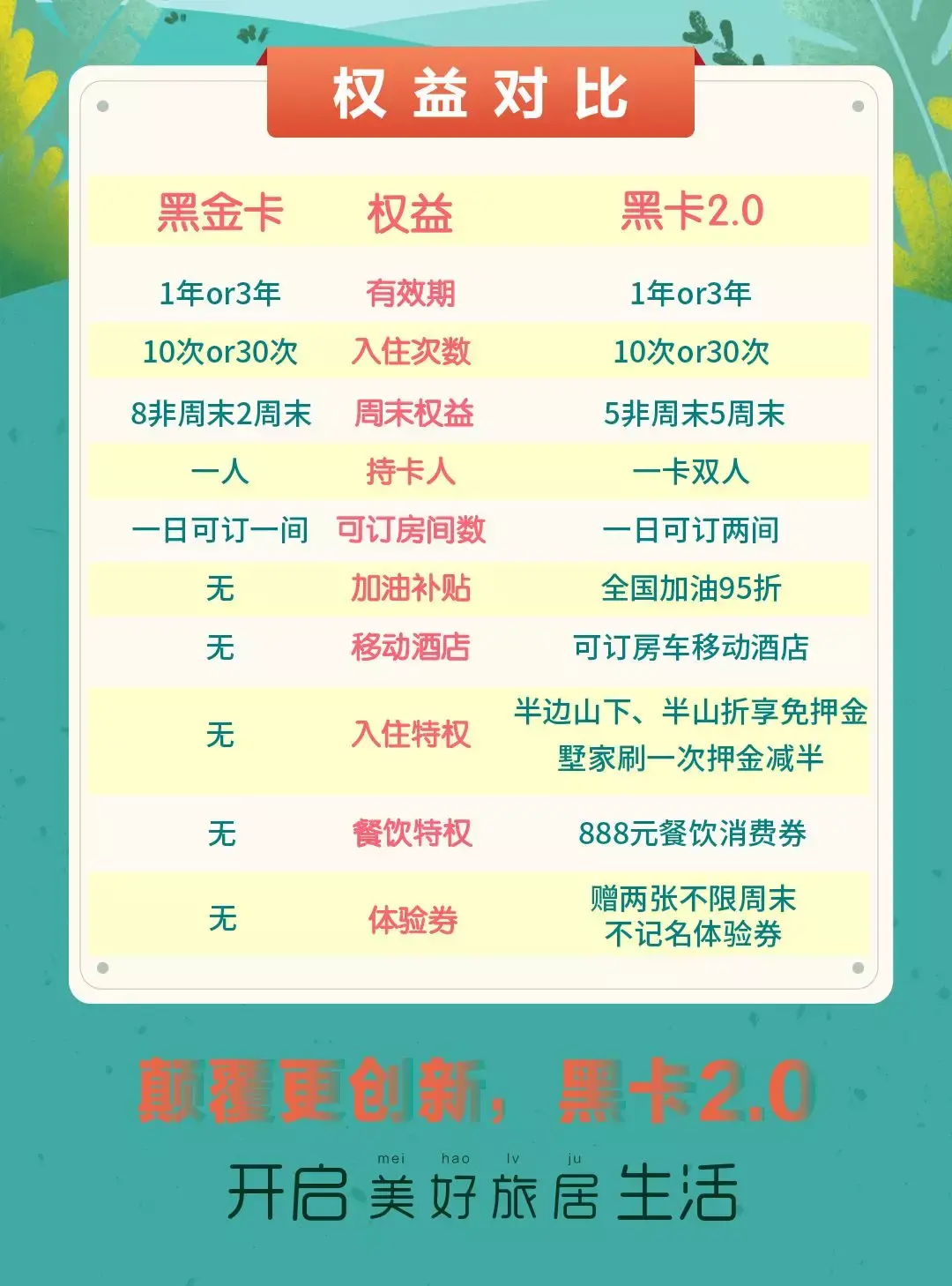 2020年,我们推陈出新,打造全新“黑卡2.0”,想给广大会员带来更多的福利和更好的入住体验。同样的,“黑卡2.0”的推广成本,我们也将最大程度让利给会员。