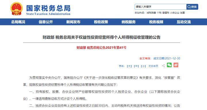 2021年年底,直接叫停了“权益类投资”个独合伙企业的核定征收,一律适用查账征收。