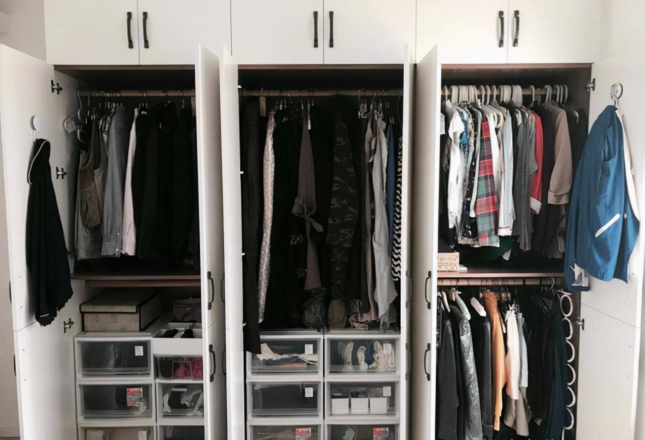 最常见的就是采用定制衣柜,在里面设计了各种各样的隔板和抽屉,这样看似很整齐,但等到你真正使用就知道有多么“鸡肋”了。