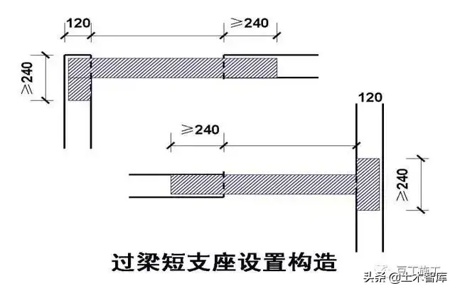 6、门窗等洞口处不应采用无筋砖过梁;过梁支承长度,6~8度时不应小于240mm,9度时不应小于360mm。当过梁支座沿墙端的纵向长度不够时,过梁支承应采取可靠的锚固措施。