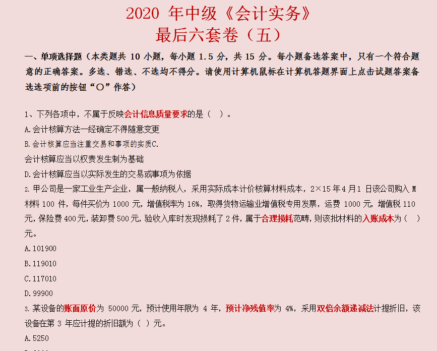 版权声明:我们致力于保护作者版权,注重分享,被刊用文章【会计学原理习题(中级会计考试)】因无法核实真实出处,未能及时与作者取得联系,或有版权异议的,请联系管理员,我们会立即处理! 部分文章是来自自研大数据AI进行生成,内容摘自(百度百科,百度知道,头条百科,中国民法典,刑法,牛津词典,新华词典,汉语词典,国家院校,科普平台)等数据,内容仅供学习参考,不准确地方联系删除处理!;