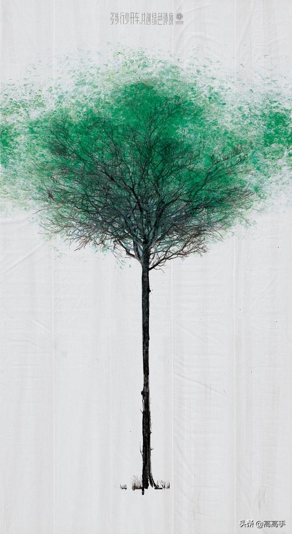 最开始我想到一个脚印,一个脚印不能代表环保,后来想到枯树,脚印如果能够形成枯树的树叶,当时有这个灵感还不够。