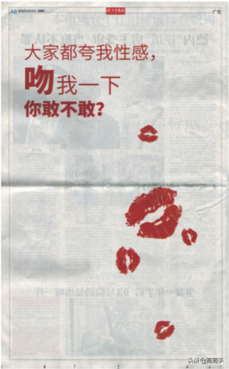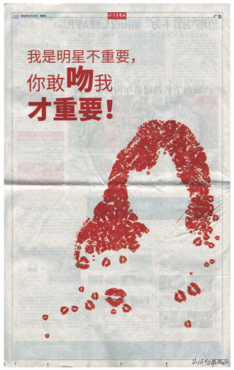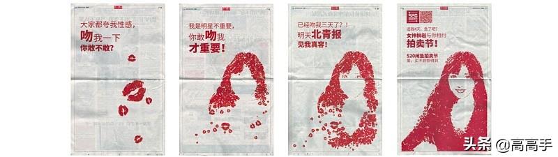 因为传统平面报纸已经失去了它的生命力,我们在报纸上面做了一些悬念的想法,它的外轮廓慢慢出来,我们当时用的唇印的方式做了“520造物节”。大家可以看到这是柳岩。