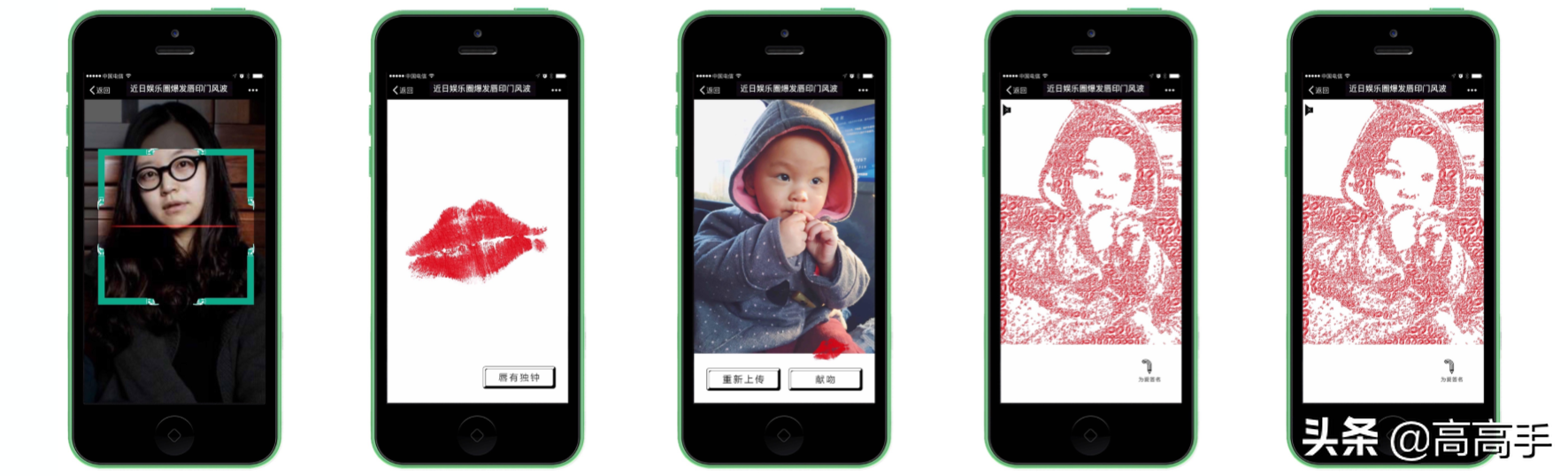 我们知道印象派莫奈的《日出》,就是用每个小点拼成一个日出,但实际上可以用无数的唇印拼成你所爱的人的影像。