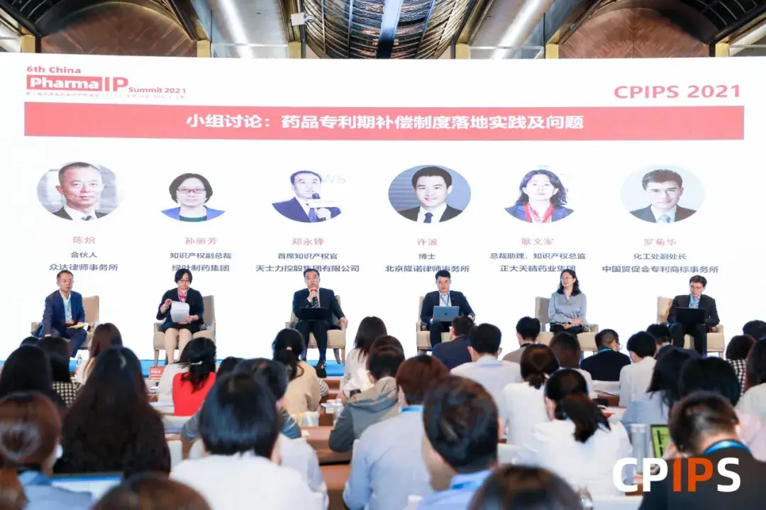 《专利法实施细则修改建议(征求意见稿)》中就药品专利期限补偿制度做了具体规定,但业内对于专利期限补偿制度还存在诸多争议,随着后续专利法实施细则的发布和实施,是否能明确相关争议还有待进一步考察。9月16日下午,由众达律师事务所合伙人陈炽主持,绿叶制药集团知识产权副总裁孙丽芳、天士力控股集团有限公司首席知识产权官郑永锋、北京隆诺律师事务所许波博士、中国贸促会专利商标事务所化工处副处长罗菊华、正大天晴药业集团副总裁耿文军参与交流讨论,就“药品专利期限补偿制度后续落地及实践中存在的相关问题”做观点分享并对现场观众提出的问题进行解答。