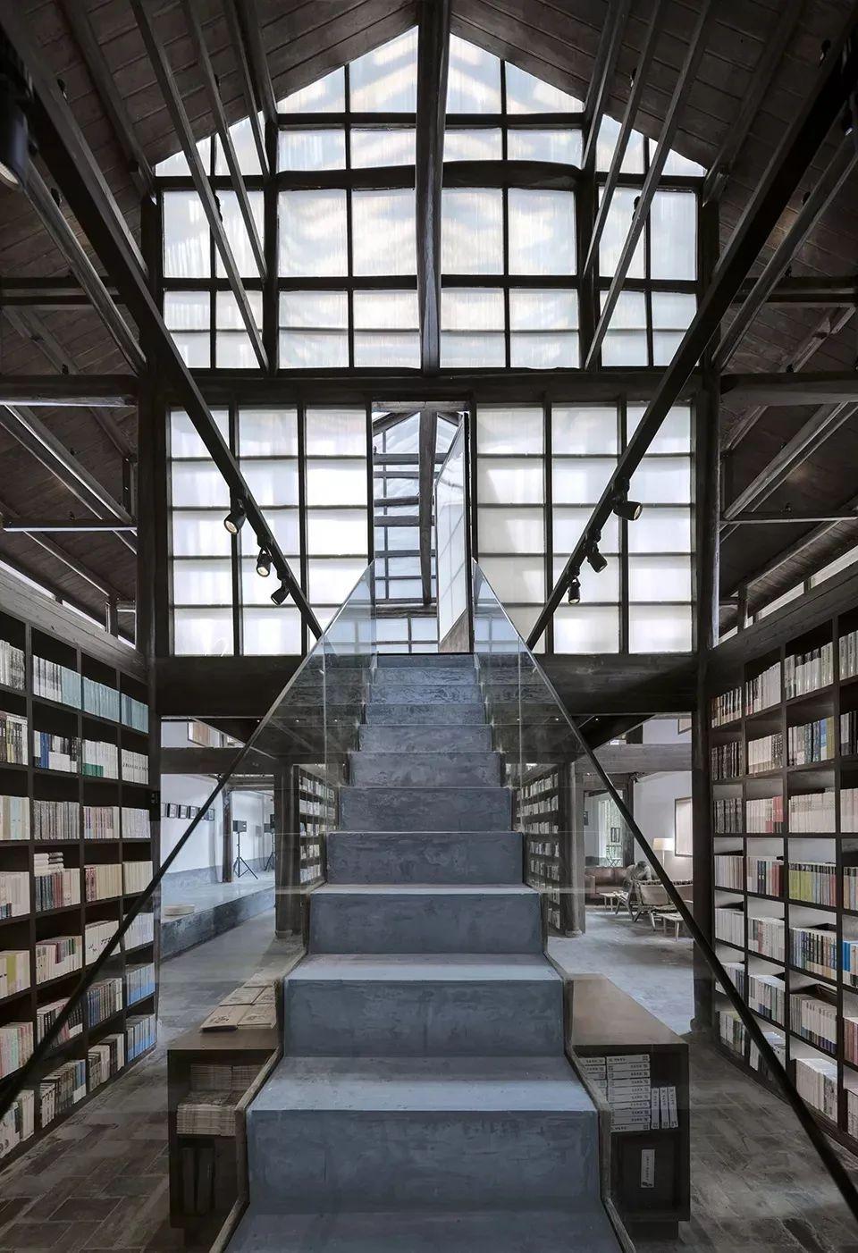 这座图书馆是由月洲村废弃水电站改造的,设计师为了保持它原本的面貌,当地原有的夯土结构,结合了当地的人文理念,打造了这样一个新旧融合的图书馆。