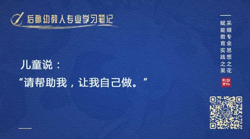蒙台梭利曾借助儿童之口,说出了她的教育理念:“请帮助我,让我自己做。”她用另一句话说出了同样的意思:“成人必须懂得细心地尊重这个目标的实现,也就是提供儿童形成自己所必要的而他自己却无法取得的材料。”