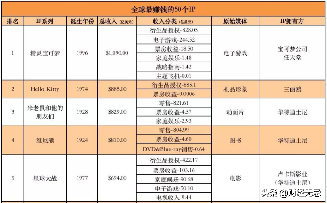 而在这份榜单上,除了宝可梦外,其他的还有马里奥、哈利波特、迪士尼公主等耳熟能详的知名IP。