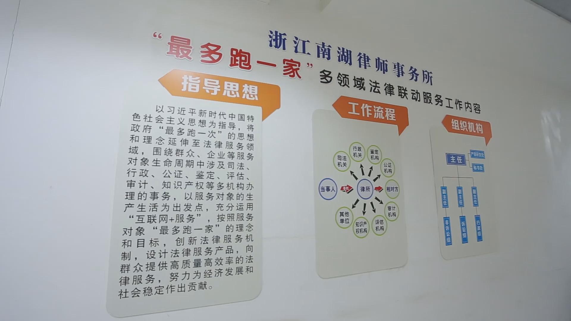 目前,浙江南湖律师事务所的“最多跑一家”多领域法律联动服务,得到嘉兴市委政法委、市司法局的充分肯定,正全力争创全国首家“最多跑一家”律所。