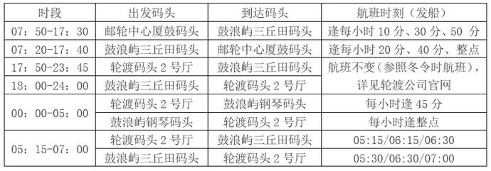 为配合做好疫情防控工作,8月2日起调整部分游客日间进出岛航班,暂停邮轮中心厦鼓码头至鼓浪屿内厝澳码头航线。游客可提前通过厦门轮渡有限公司官网、官方微信、官方支付宝生活号购买日间航线船票前往鼓浪屿。进出岛航班安排具体如下: