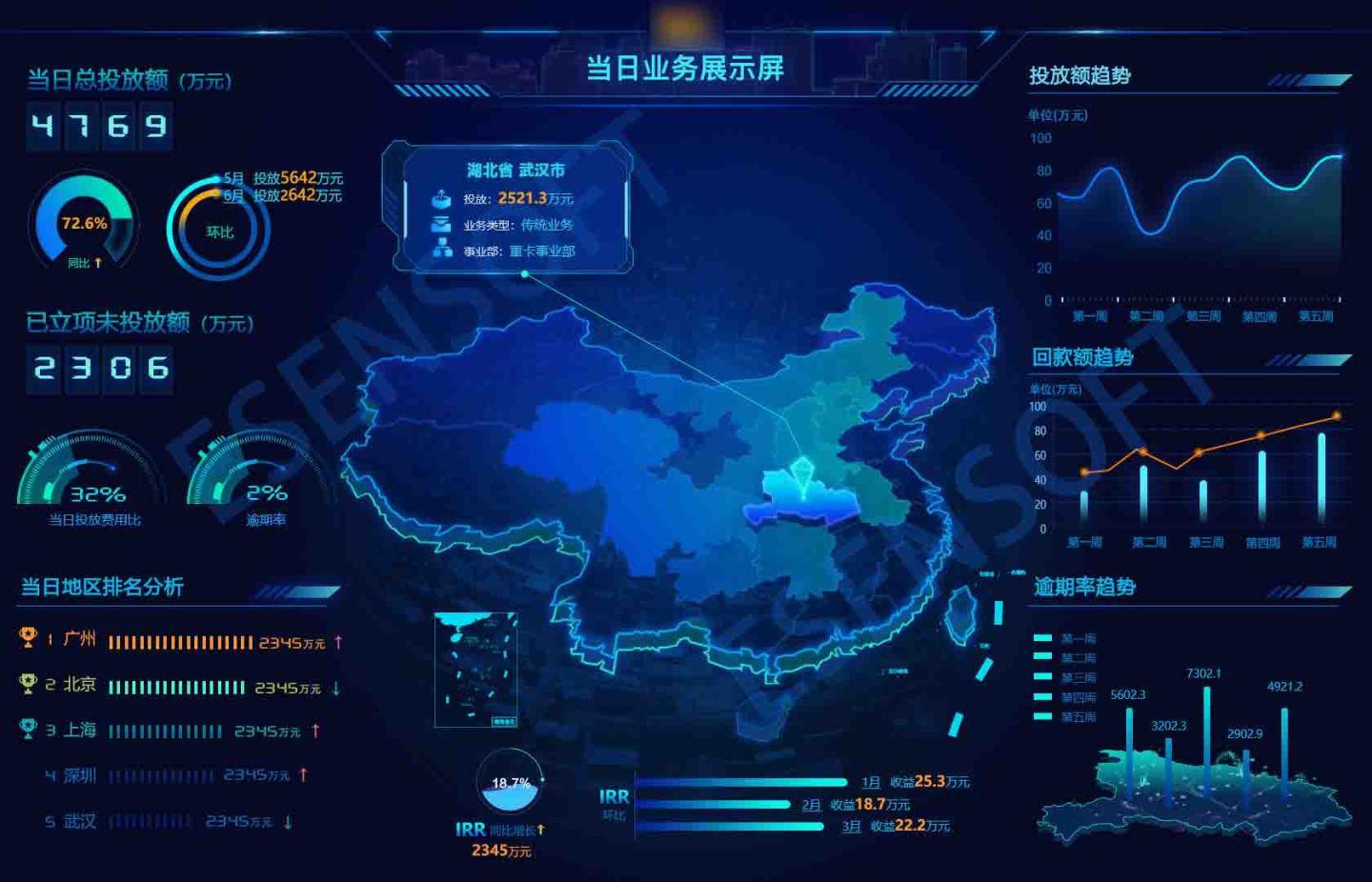 今天主要为大家介绍能做出炫酷可视化效果工具。有可以免费自主制作的敏捷BI,也有酷炫的3D大屏,一起欣赏一下吧~