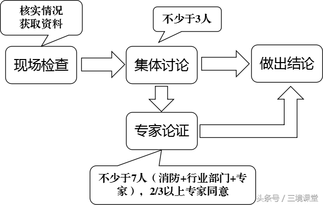 ③专家技术论证:对于涉及复杂疑难的技术问题,按照GB35181判定重大火灾隐患有困难的,应组织专家成立专家组进行技术论证,形成结论性判定意见。结论性判定意见应有三分之二以上的专家同意;