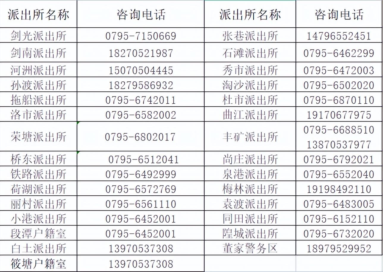 附:丰城市公安局各派出所户籍窗口联系电话