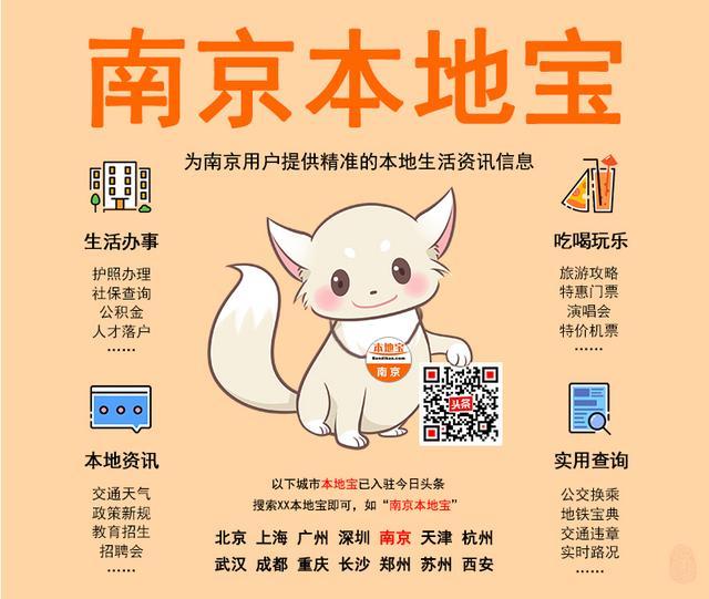 如果您喜欢本文,欢迎评论、收藏、转发、点赞。获取更多南京本地资讯消息和办事指南,敬请关注【南京本地宝】头条号!