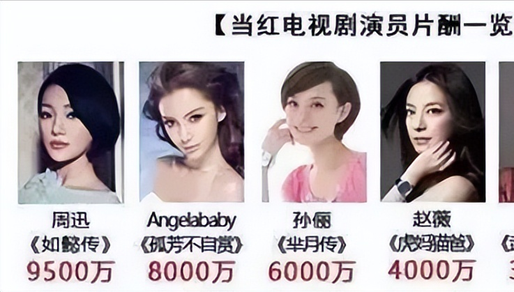 2008年,周迅拍摄《画皮》时片酬只有400万;2013年拍摄《红高粱》就达到了3000万;到了《如懿传》更是达到了9000万元的天价。