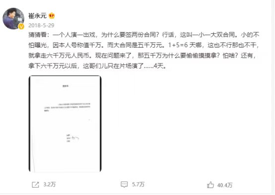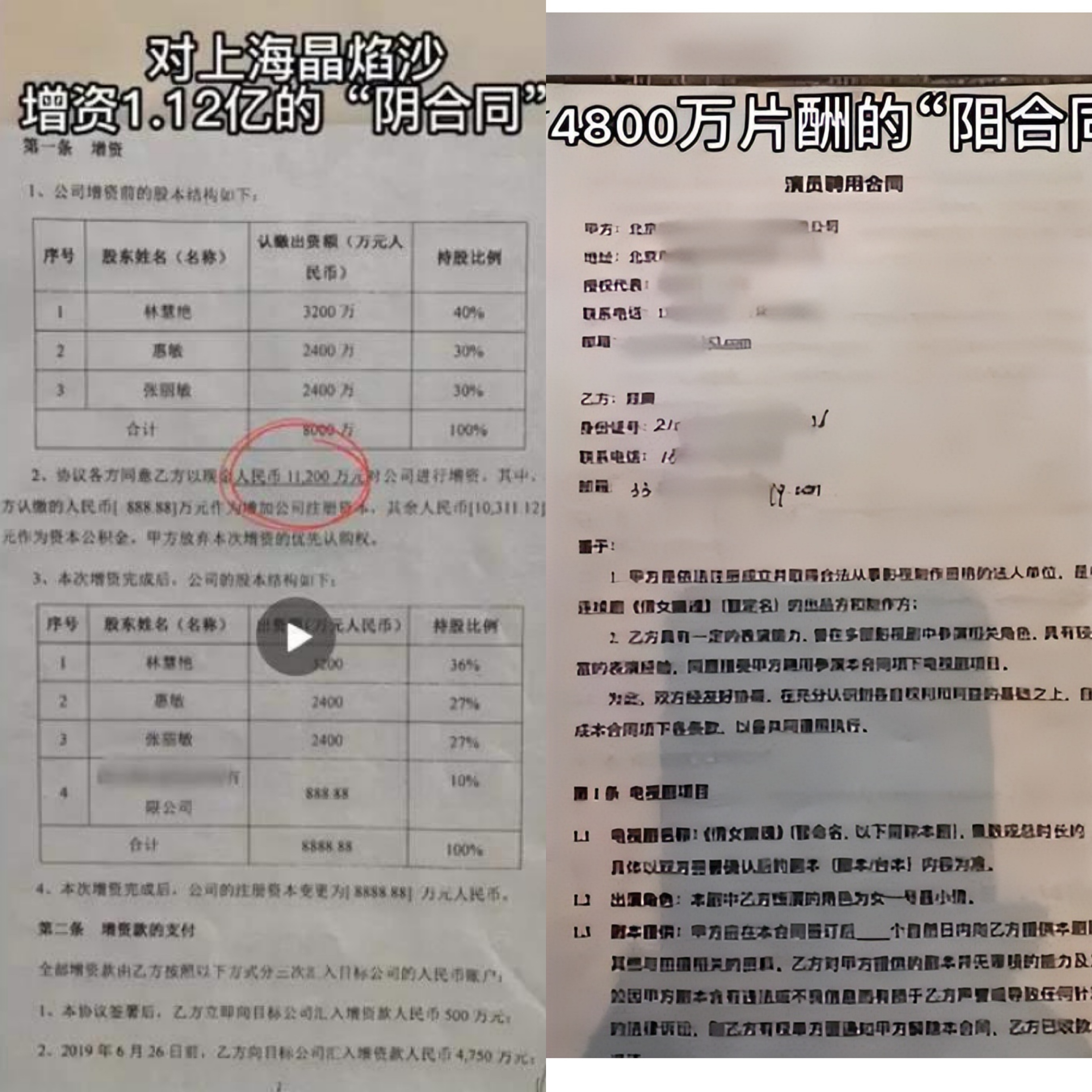 表面上合同上签订的拍摄金额只有4860万,但是实际上总共拿到了1.6亿,都拿到了这么多钱了她还是不太知足,还玩起了逃税。