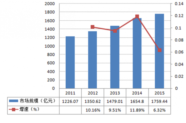 2011年美发营业额为1226.07亿元,2015年预计1759亿元,虽然增速放缓,但仍旧成上升趋势。