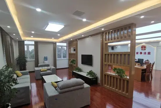 “你们都静一静,把心里的不满和委屈都倒一倒。”在龙华山法庭家事审判庭,周静法官正在组织当事人调解。和常规的审判庭不同,家事审判庭由圆桌法庭和会客厅式调解室组成,装修风格以浅色调为主,法庭标识牌由传统诉讼的“原告被告”转化为“父亲母亲”,尽量淡化诉讼称谓对立,避免引发对抗情绪。