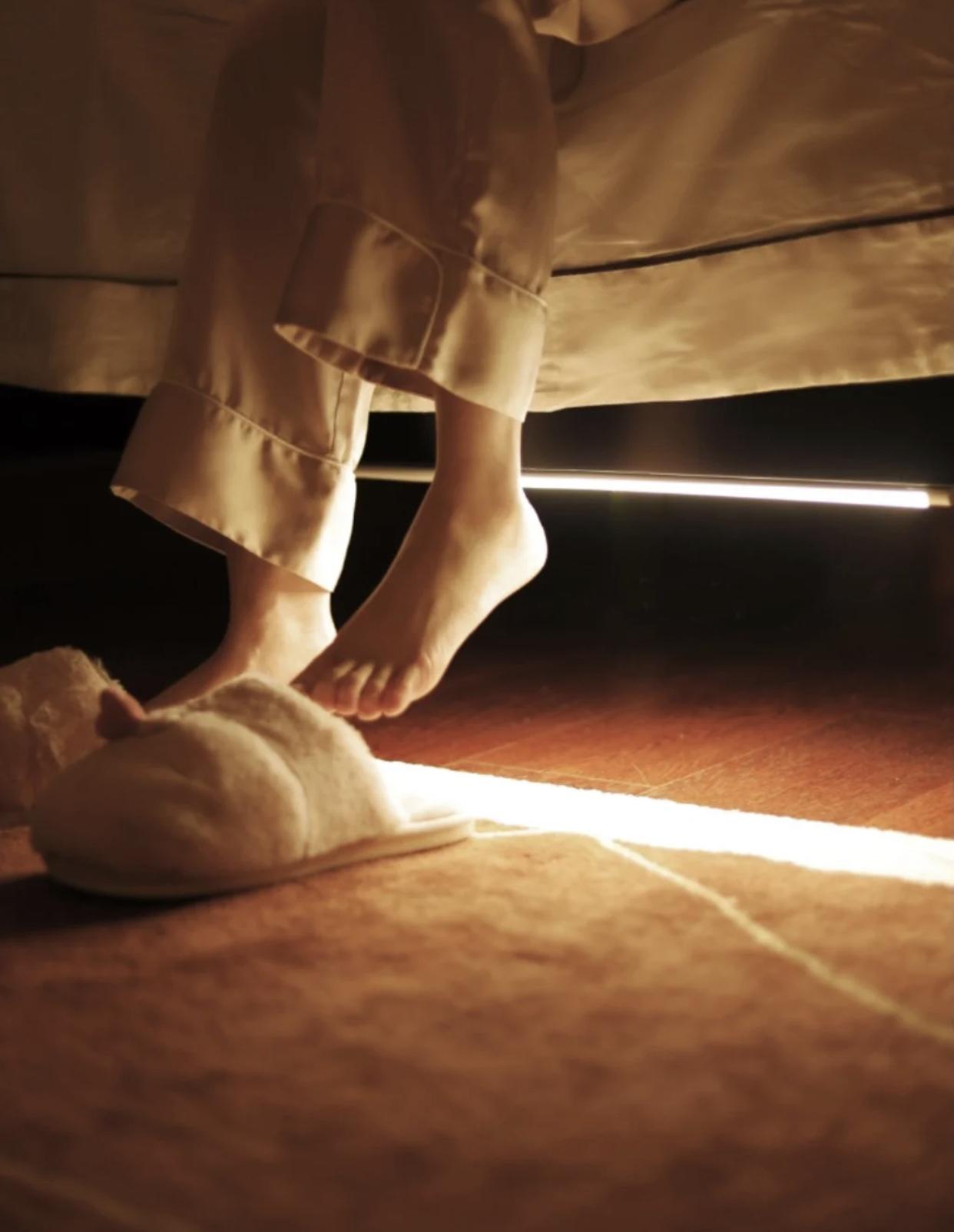 不过在我看来,还是这种粘贴在大床底下的长条式感应灯最为合适。不仅不影响美观,而且体验非常棒!