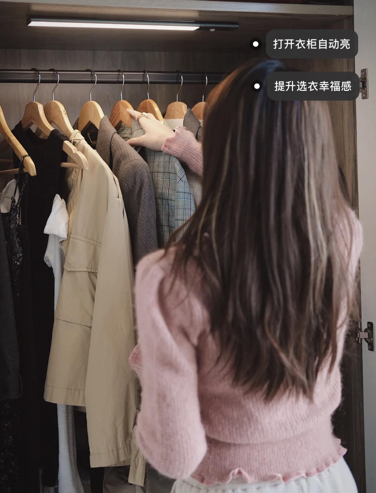 无论是砌墙衣柜,还是成品定制衣柜,都有一个共同的特点,那就是衣柜里面的光线比较弱。再加上衣柜内部悬挂的衣服越来越多,所以想找一件衣服就比较费劲。这个痛点,因为很多人都在经历,所以也倒逼着成品定制衣柜厂家的革新。
