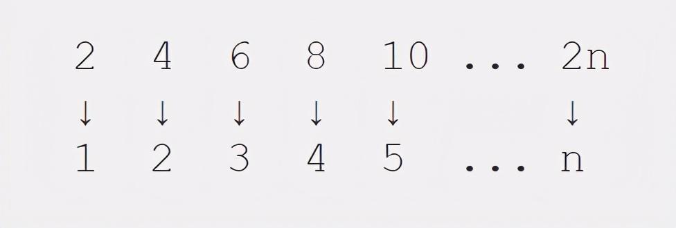 到目前为止,我们遇到的所有集合的元素都是无限的,这意味着它们会无限延伸。然而,我们也证明了它们的“大小”是不一样的,或者至少,它不能与自然数一一对应。也许更矛盾的是,我们已经看到无穷集(自然数)的无穷子集(例如偶数)可以变成一对一的对应关系,这就产生了无穷集的一个特殊性质,即: