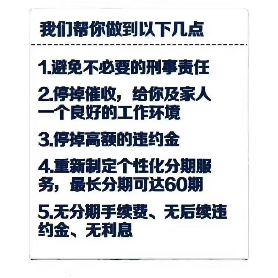 “避免不必要的刑事责任”、“停掉催收,给你及家人一个良好的工作环境”、“停掉高额的违约金”、“重新制定个性化分期服务,最长分期可达60期”、“无分期手续费、无后续违约金、无利息”,这是支付界百科朋友圈里一个做协商还款中介的文案。