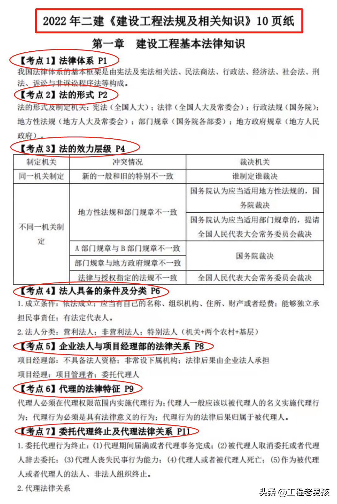 最终版22年二建法规10页纸,表格记忆超级方便,看一遍就能记住!