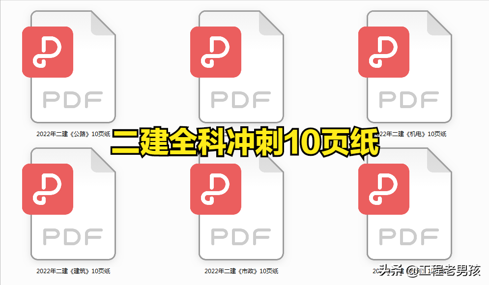 除了二建法规以外,其他二建科目(二建管理、市政、机电、建筑、公路、水利水电)10页纸也都有完整电子版。