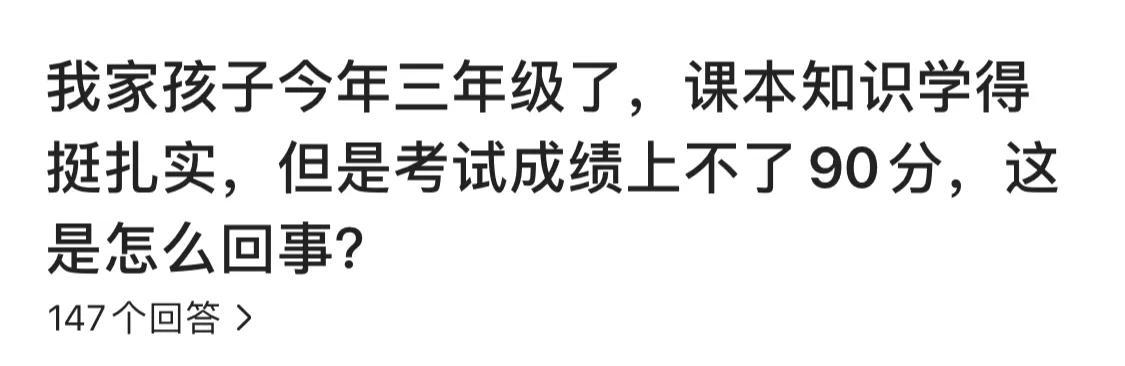 考试成绩上不了90分,是一次考试还是次次考试?全班、全年级有多少孩子在90分以上?这些请家长自己了解。