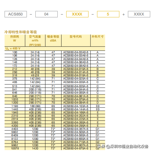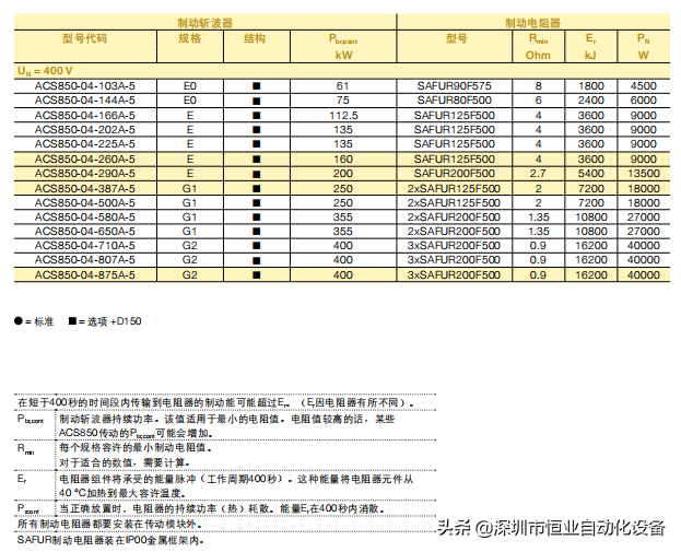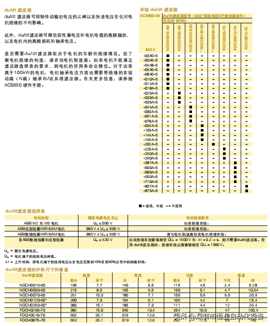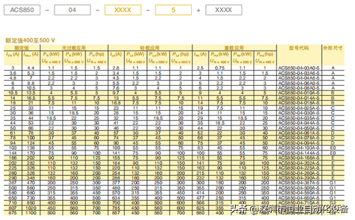 4、根据电机的额定功率从额定值表选择传动的订购代选择需要的可选项将可选项代码添加到传动的订购代码。记得在每个选项代码之前使用“+”符号。