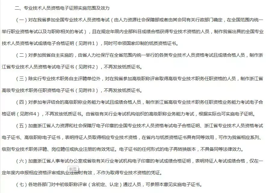 2017年11月,浙江省人力资源和社会保障厅印发《关于加快推进专业技术人员资格信息化工作的意见》,率先提出:高级职称实行电子证书,不再发放纸质证书。
